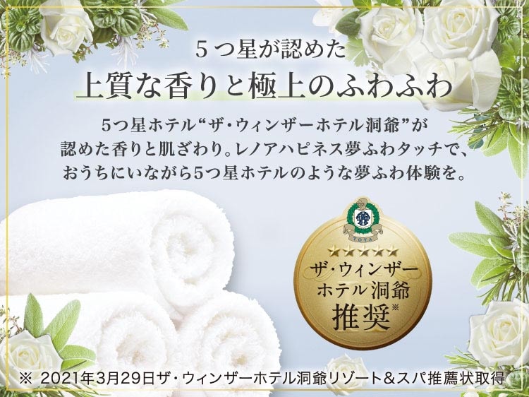 【レノア ハピネス 5つ星ホテルの夢ふわタッチ 柔軟剤 ホワイトティーの香り 本体の商品詳細】