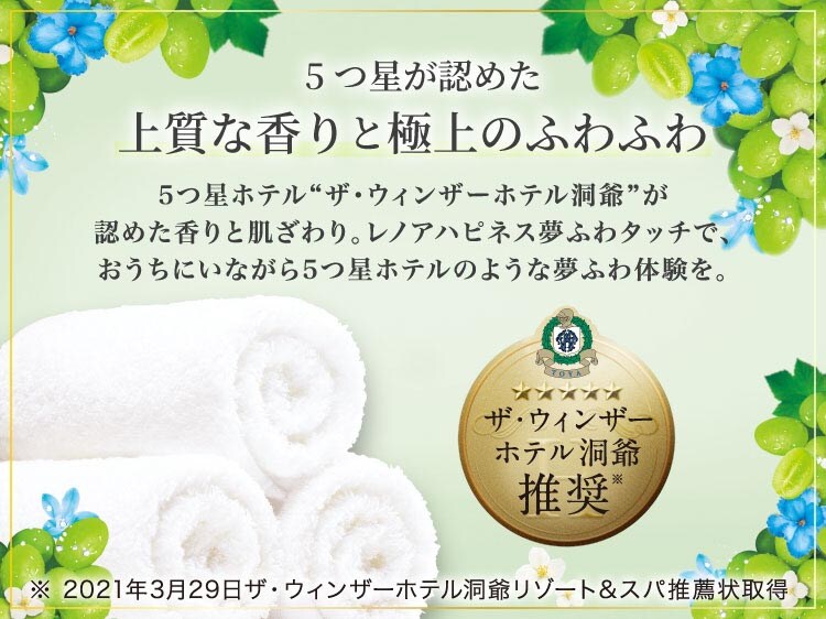 【レノア ハピネス 5つ星ホテルの夢ふわタッチ 柔軟剤 シャインマスカットの香り 本体の商品詳細】