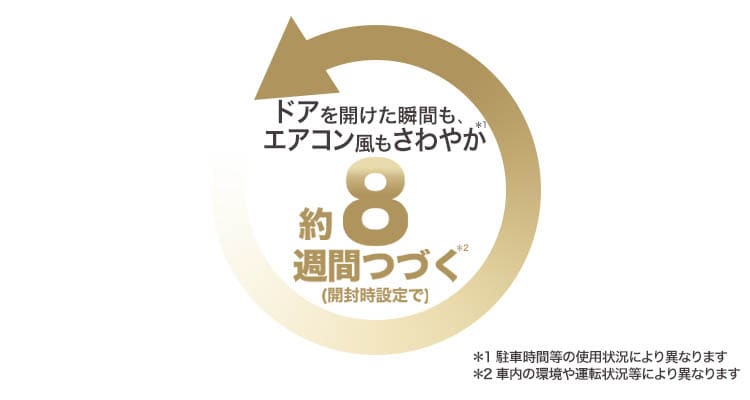 ●使用期間:約8週間(開封時設定での試験時の状況に基づく。車内の環境や運転状況等により異なります。)