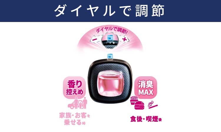 (3) 効果の調節 ダイヤルで香り・消臭の強さを調節。