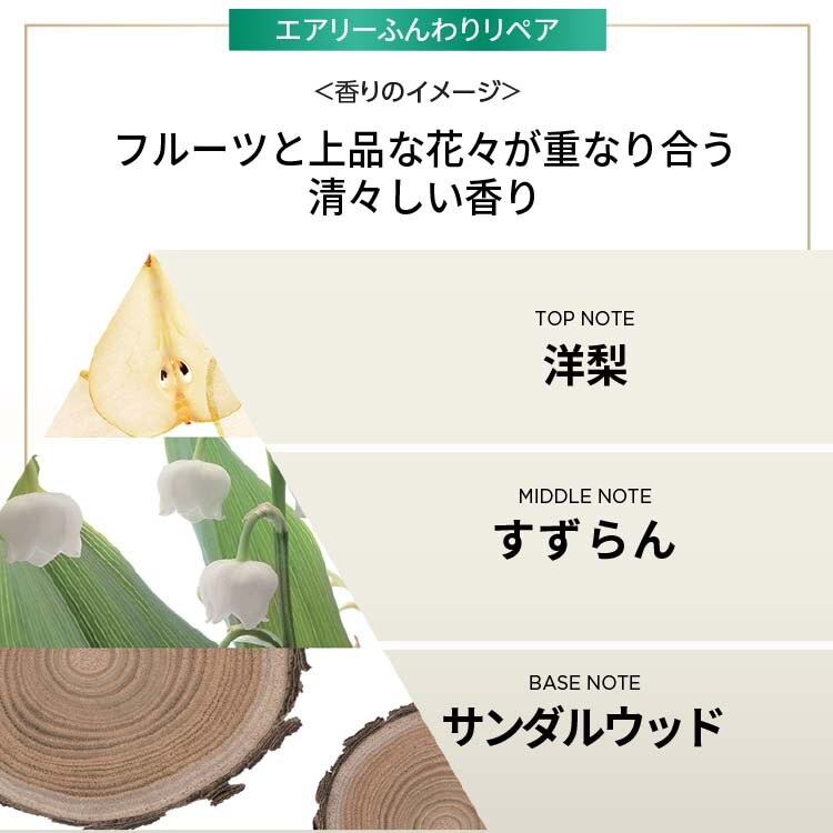 ●エアリーふんわりリペアシリーズは、ハリ・コシを与え、自然なボリューム感のある髪へ導きます。