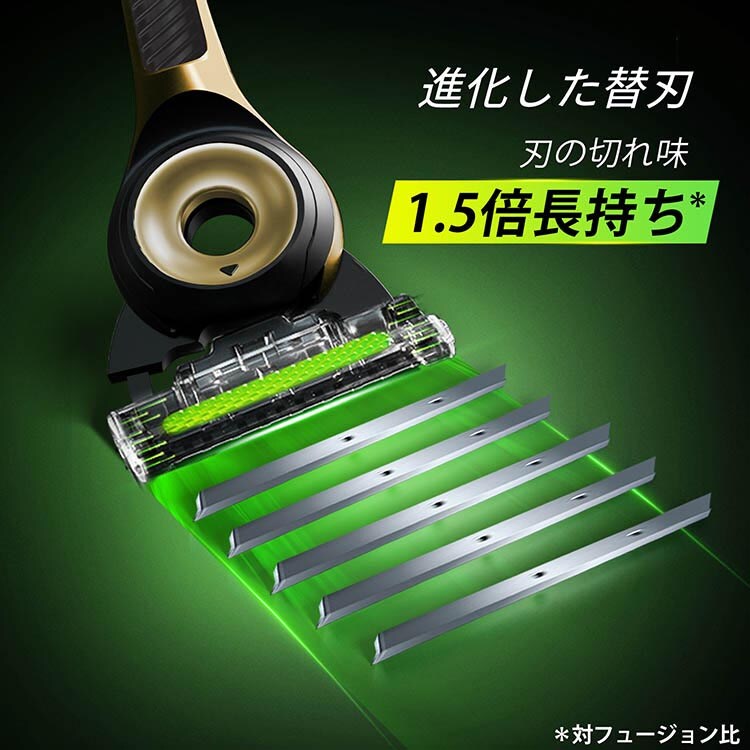 ●ジレットの5枚刃:1.5倍 刃の切れ味長持ち(メーカー従来品フュージョン比較)