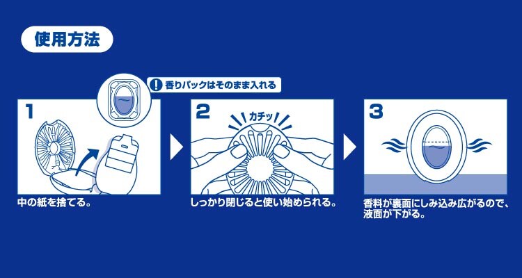 ・つめかえる際は、香りパックの端を持つなどして香料が皮膚に付着しないようにする。