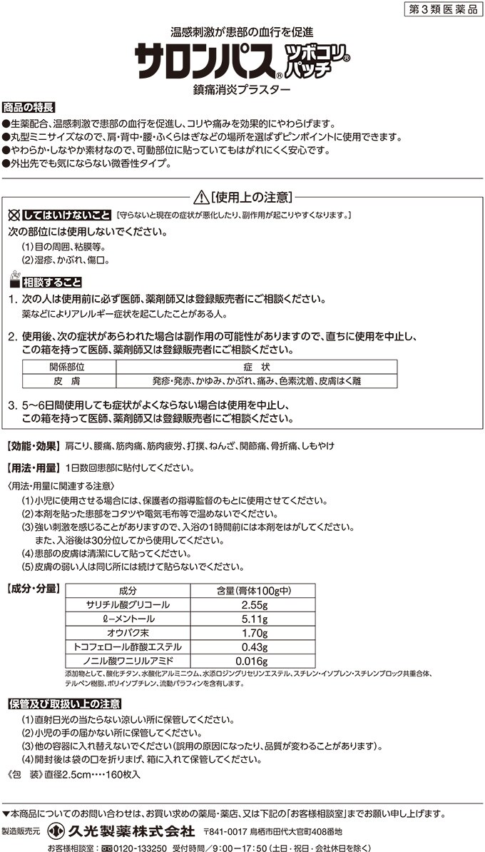 【第3類医薬品】サロンパス ツボコリパッチ (160枚入(セルフメディケーション税制対象))