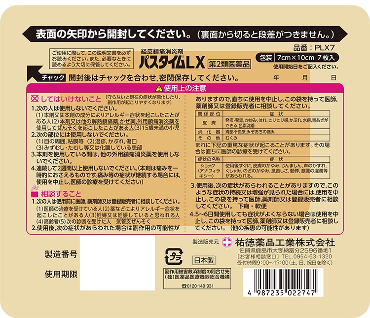 【第2類医薬品】パスタイムLX (7枚入(セルフメディケーション税制対象))