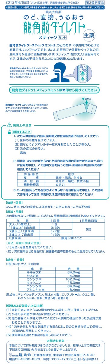 【龍角散ダイレクトスティック ミントの商品詳細】
