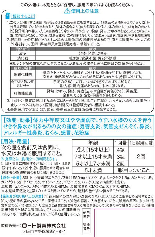 (ロート和漢箋 しょうせいりゅうとう しょうせいりゅう湯 新・ロート小青竜湯錠2 新・ロート小青竜湯錠?)