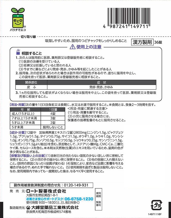3.1ヵ月位服用しても症状がよくならない場合は服用を中止し、製品の袋を持って医師、薬剤師又は登録販売者に相談すること。