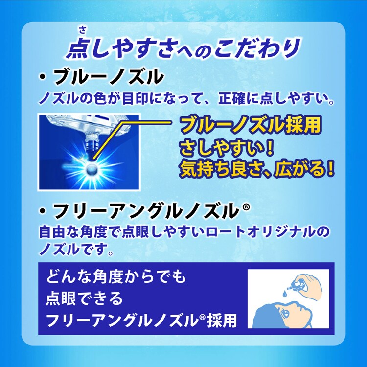 一滴に凝縮された目の覚めるような超・爽快感が、さした瞬間、一気に目の奥へ突き抜ける!コンタクトの瞳もみずみずしくうるおし、つらい目の乾きや疲れも改善します。