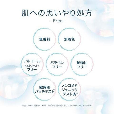 ●無香料・無着色。鉱物油・アルコール(エタノール)・パラベンフリー。
