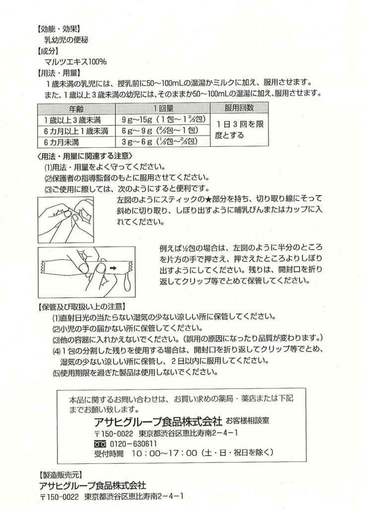4.便通不足は、母乳不足又は調製粉乳希釈方法の誤りにより起こることがありますので、このような場合には医師、薬剤師又は登録販売者に相談してください。