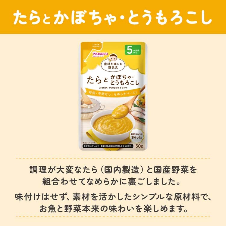 和光堂 素材を楽しむ離乳食 たらとかぼちゃ・とうもろこし (50g)