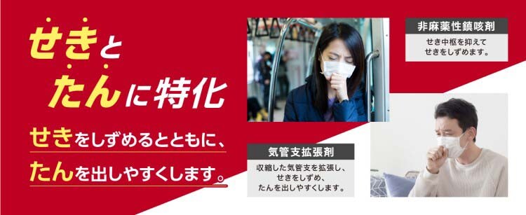 ●せき、たんは、かぜなどの、のど、気管支の病気にともなっておこります。新コンタックせき止めダブル持続性は、たんを伴うせきにも効くように設計された処方。