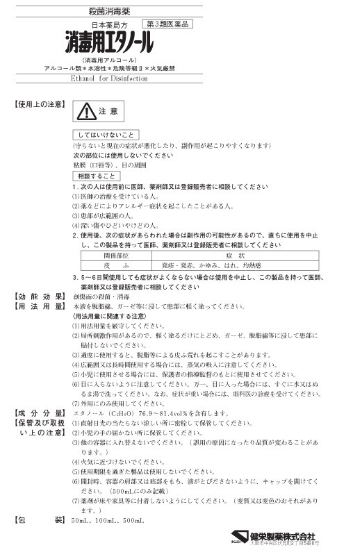 【第3類医薬品】日本薬局方 消毒用エタノールP (500ml)