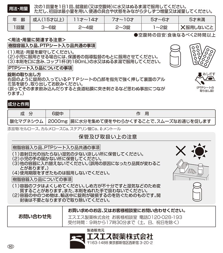 酸化マグネシウム:2000mg:腸に水分を集めて便をやわらかくすることで、スムーズなお通じを促します