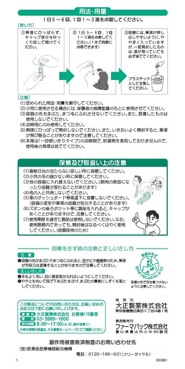 2.1日5~6回、1回1~3滴を点眼してください。(1本で両眼に点眼できます)