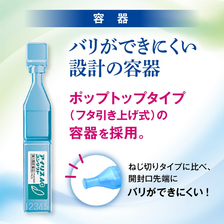 ●防腐剤フリー(ベンザルコニウム塩化物、パラベン)、清涼化剤フリー(メントール)で、しみにくいやさしいさし心地の目薬です。