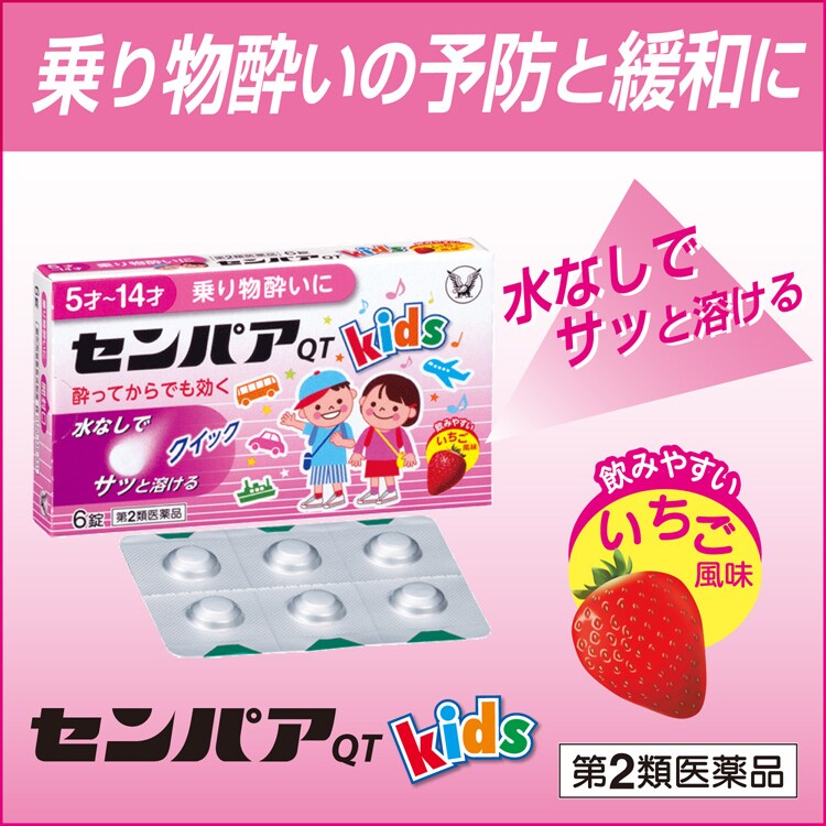 ●水なしでかまずにすばやく溶けるタイプのお子さま用の乗物酔い止め薬です。