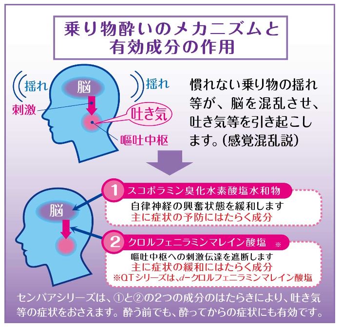 乗物酔いによるめまい・吐き気・頭痛の予防及び緩和