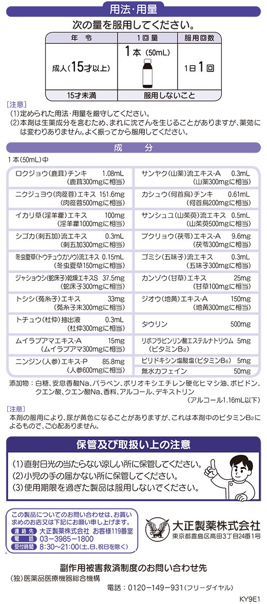●鹿茸、肉ジュ蓉、淫羊カクやブラジル原産滋養強壮生薬のムイラプアマをはじめ、 計17種類の生薬エキス(原生薬として計6050mg相当)、タウリン、ビタミンを配合した処方です。