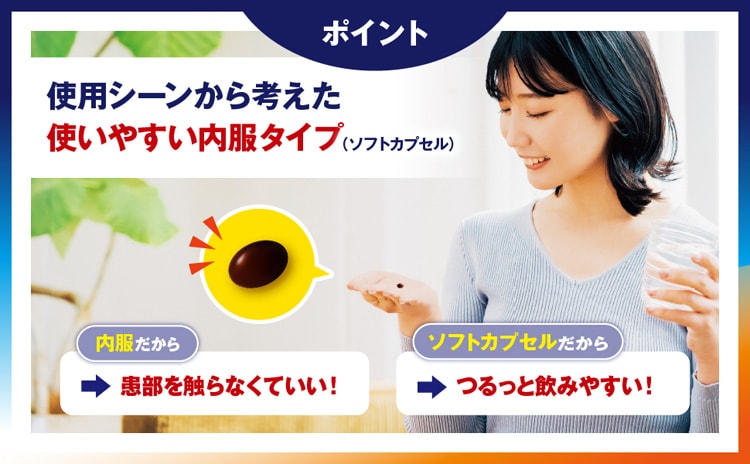 ●1回1カプセル、1日3回の服用でくり返すいぼ痔や痔の出血・痛み・はれに優れた効果を発揮します。