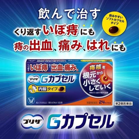 ●プリザ Gカプセルは、いぼ痔や痔の出血・痛み・はれに身体の内側から効く飲む痔疾用薬です。