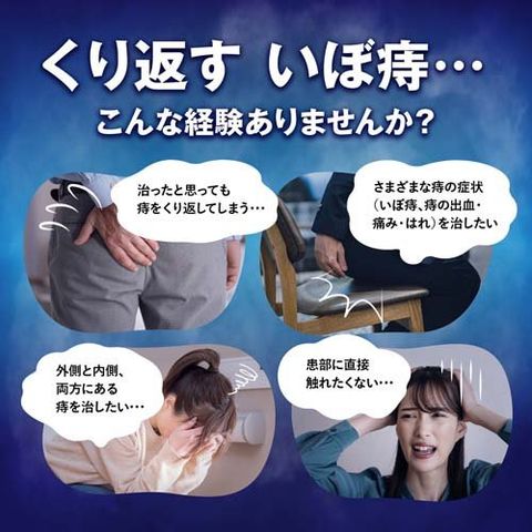 | 次の場合の症状の緩和:痔核(いぼ痔)、痔出血、痔の痛み、痔のはれ |