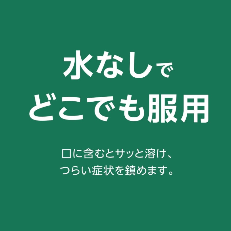 ●水なしでのめ,口の中でサッと溶けますので外出先で起こる急な鼻炎症状に適しています。