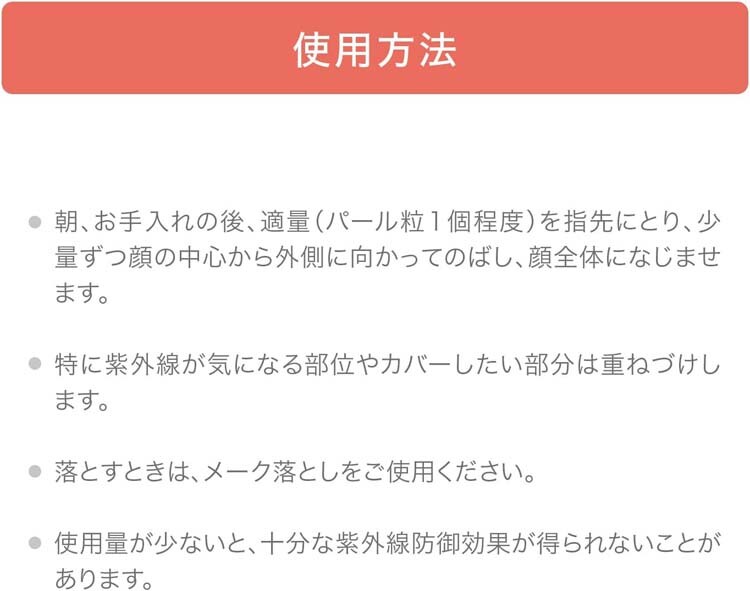 ・使用量が少ないと、十分な紫外線防御効果が得られないことがあります。