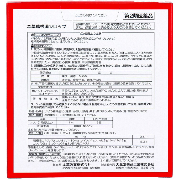 【第2類医薬品】本草 葛根湯シロップ (30ml×3本入(セルフメディケーション税制対象))