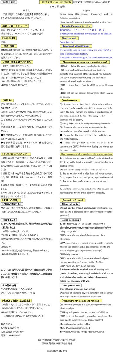 2.2-3回使用しても排便がない場合は使用を中止し、この文書を持って医師、薬剤師又は登録