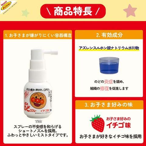 ●お子さまののどの痛みに3つのこだわりの商品設計。