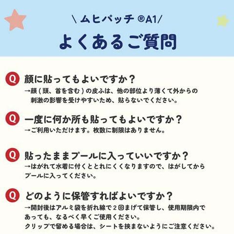 ●さわやかな清涼感のある貼るかゆみ止め薬です。かきむしって症状を悪化させやすいお子さまの虫さされにおすすめです。患部をおおうことにより、薬の吸収が高まり、効果の持続が期待できます。