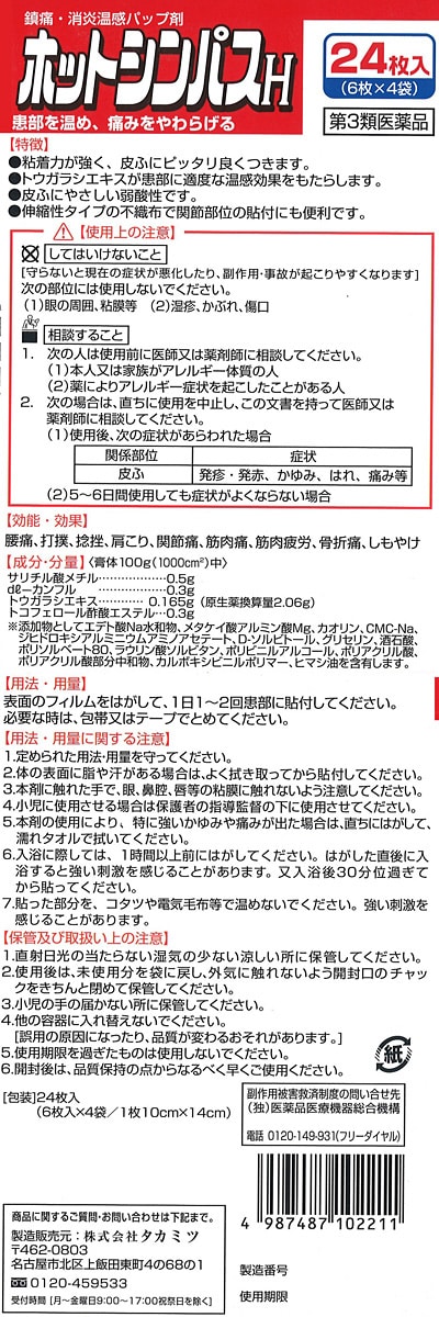 【第3類医薬品】ホットシンパスH (24枚入(セルフメディケーション税制対象))