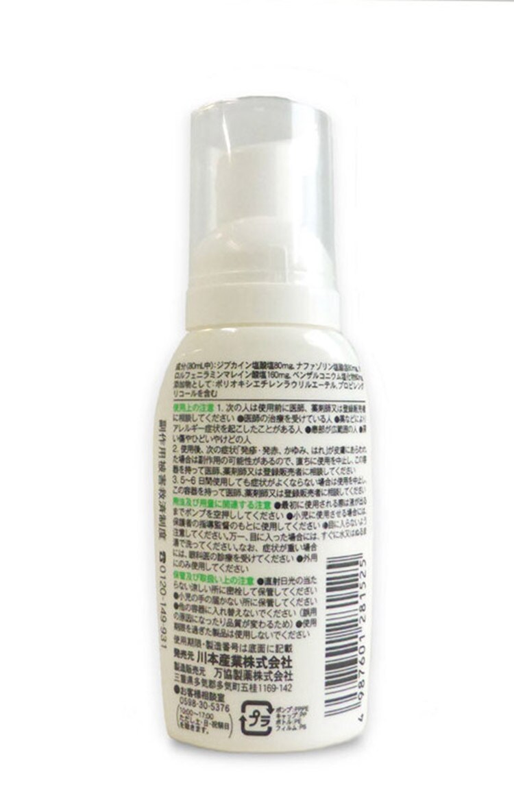 ・使用後、次の症状(発疹・発赤、かゆみ、はれ)が皮膚にあらわれた場合は、副作用の可能性があるので、直ちに使用を中止し、製品の容器を持って医師、薬剤師又は登録販売者に相談してください。