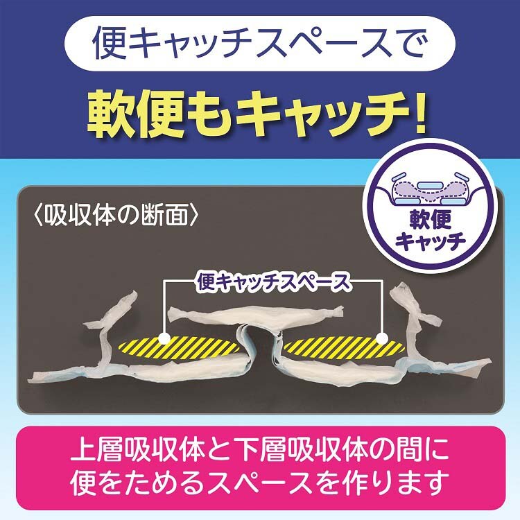 ●吸収体が2層構造となっており、すき間を埋めて、背モレ・横モレを防ぎます。