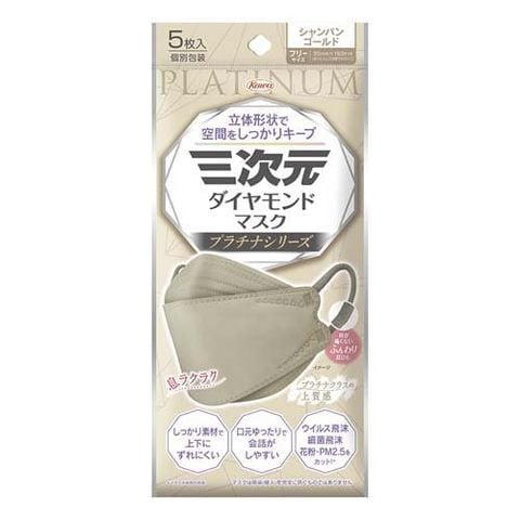 三次元ダイヤモンドマスク プラチナ フリーサイズ シャンパンゴールド (5枚入)