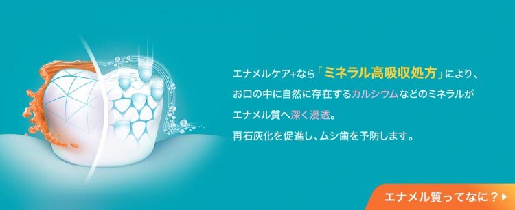 ●酸蝕歯に着目したミネラル高吸収処方です。ミネラル高吸収処方は自然なミネラルの吸収を助け、エナメル質を強化してムシ歯を防ぎます。エナメルホワイトニングシリカ配合で、ブラッシングによりエナメル質表面の黄ばみを除去、輝く白い歯へ。