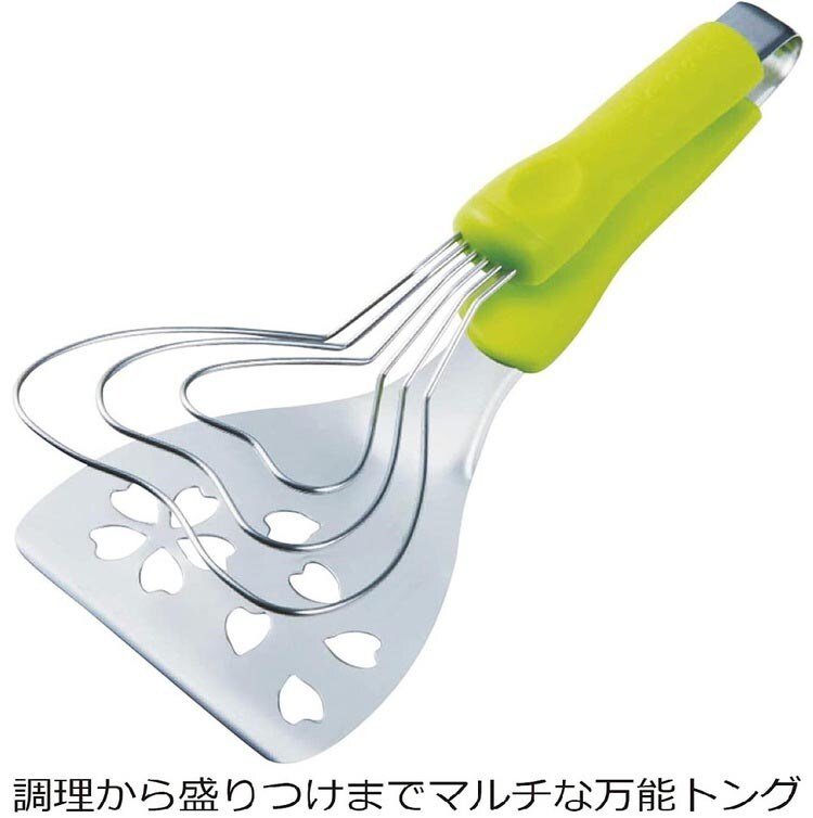 | ・本体サイズ:約10×73×24cm ・重量:約136g ・材質:ワイヤー部、ヘラ部、連結部:ステンレス、グリップ部:ナイロン ・耐熱温度:150度 |