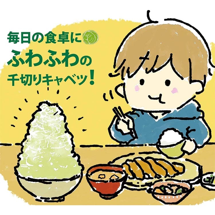 ●刃先には鋭い高密度三角刃が2mm間隔で並び、食材の繊維をサクサクと切り刻むことで、『ふわふわ』で『シャキシャキ』な千切りキャベツが簡単につくれます。