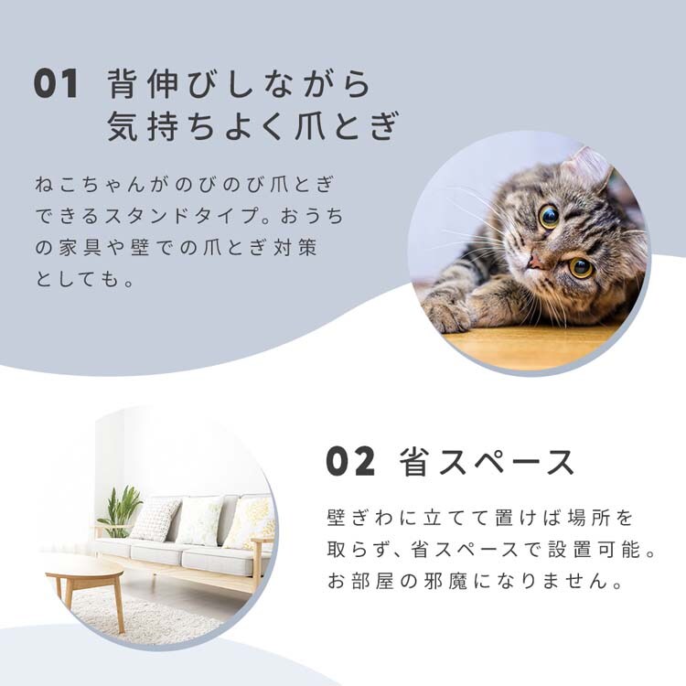 ●背伸びしながら気持ちよく爪とぎ。研いでボロボロになった爪とぎ部をひっくり返して新しい爪とぎ部に入れ替えできる!