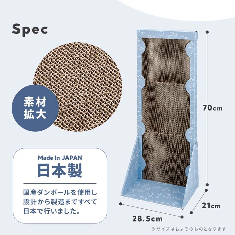 | ・商品サイズ:(約)28.5×21×70cm(組立時) ・材質:本体/紙 ・内容物:本体×1、爪とぎパッド×3、底部×1、ネジ(オス)×12、ネジ(メス)×12 ・用途:本品は猫用の爪とぎです ・原産国:日本 |