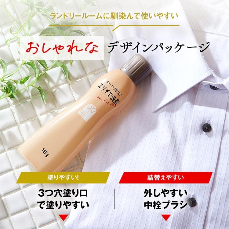 落ちにくいエリやそでの嫌な汚れに直接塗って洗濯機で洗うだけで簡単に汚れが落とせます。