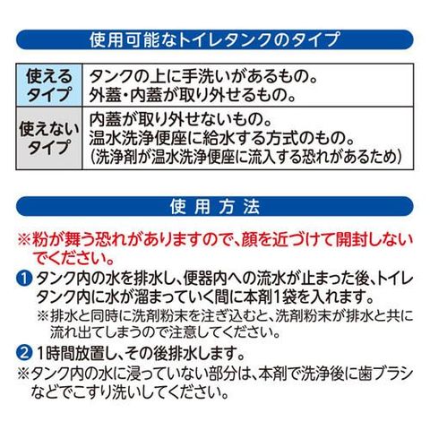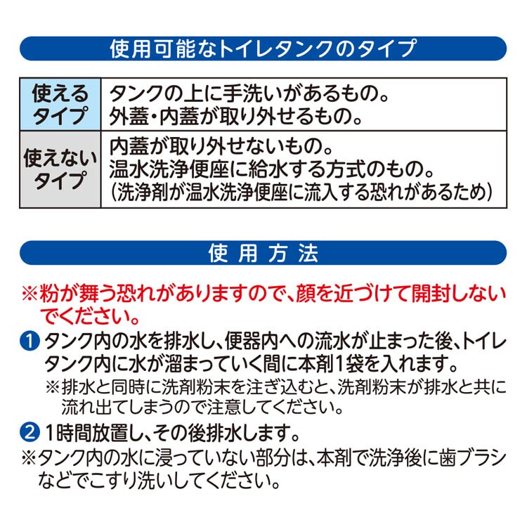 ・タンク内の水に浸っていない部分は、本剤で洗浄後に歯ブラシなどでこすり洗いしてください。