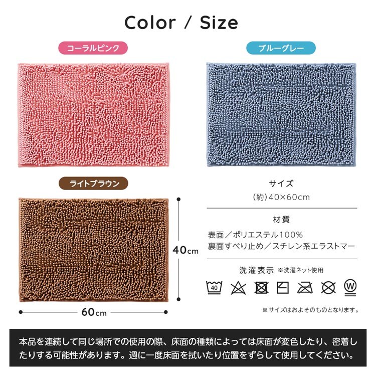 | ・カラー/コーラルピンク ・材質/表面:ポリエステル100%、裏面すべり止め:スチレン系エラストマー |