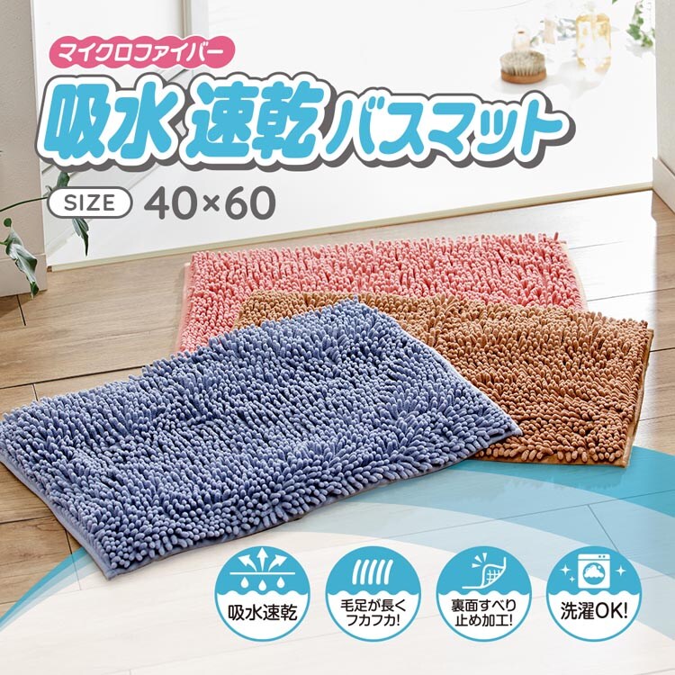 アイメディア バスマット マイクロファイバー 40×60cm 速乾吸水 (1枚)