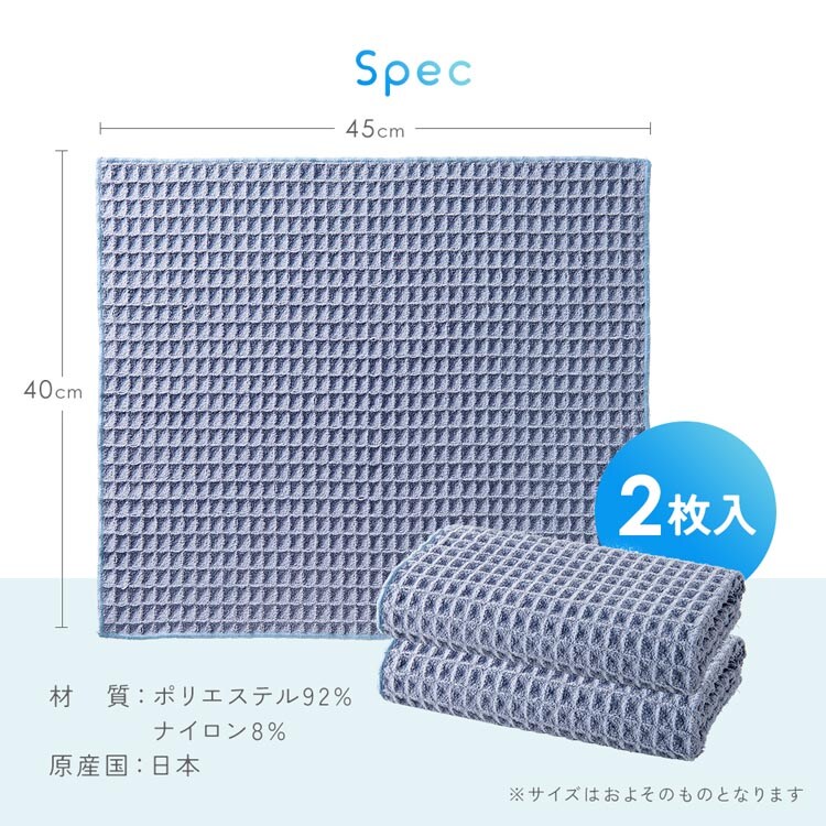 ●極細繊維で隙間が多く水分をしっかり吸水。さらにワッフル織りの凹凸で表面積アップ!1枚で約200cc(コップ1杯分)の水を吸水します。