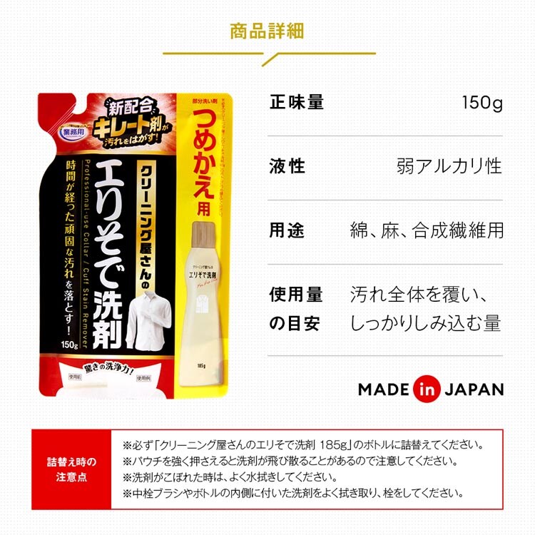 【アイメディア クリーニング屋さんのエリそで洗剤 詰替用の商品詳細】