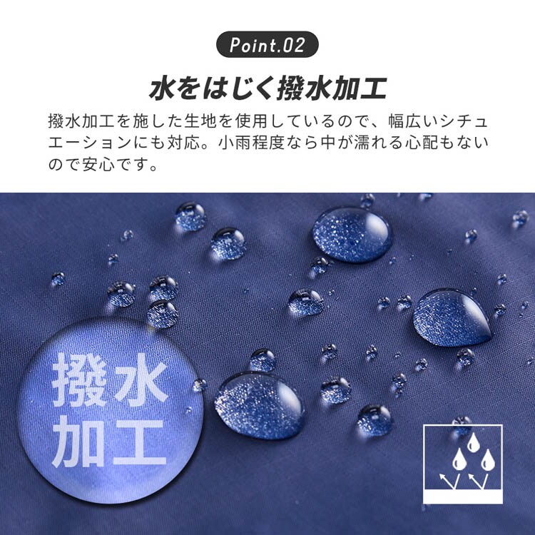 ●撥水加工を施した生地を使用しているので、幅広いシチュエーションにも対応。