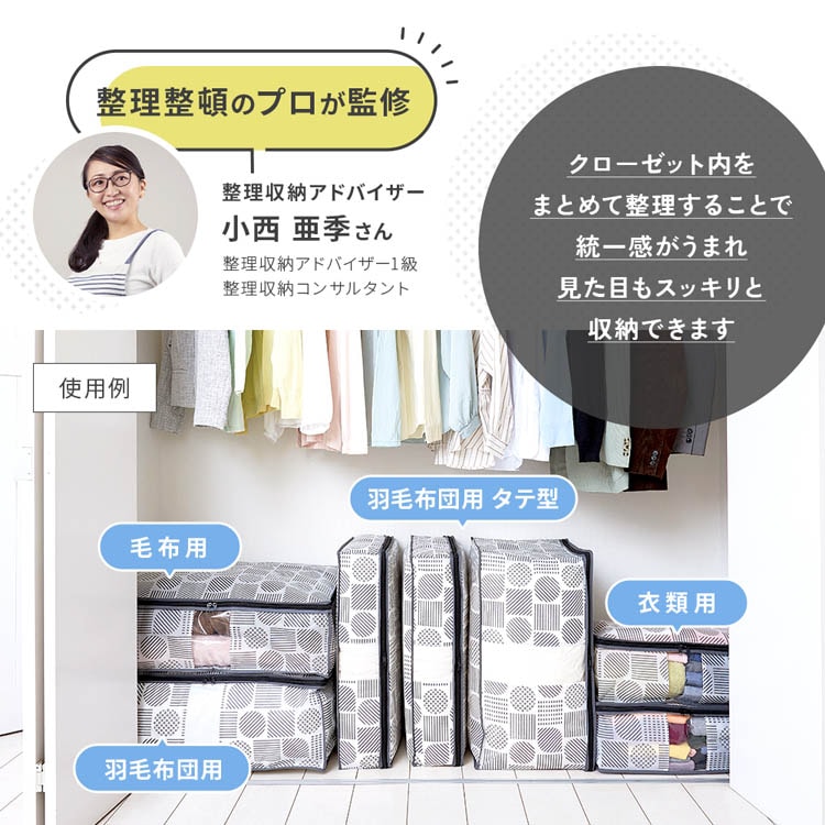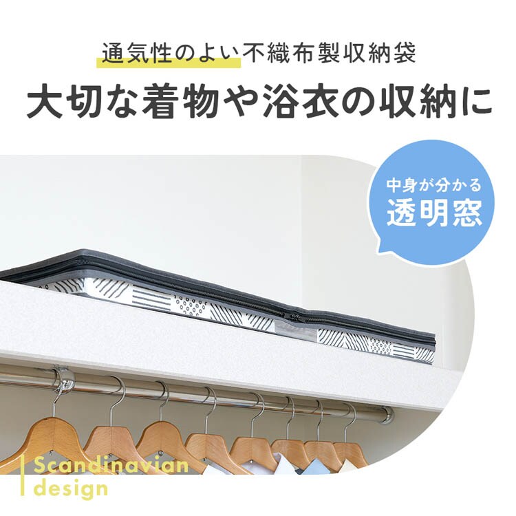 ●着物や浴衣の収納に。通気性のよい不織布製で、中身が分かる透明窓付き。